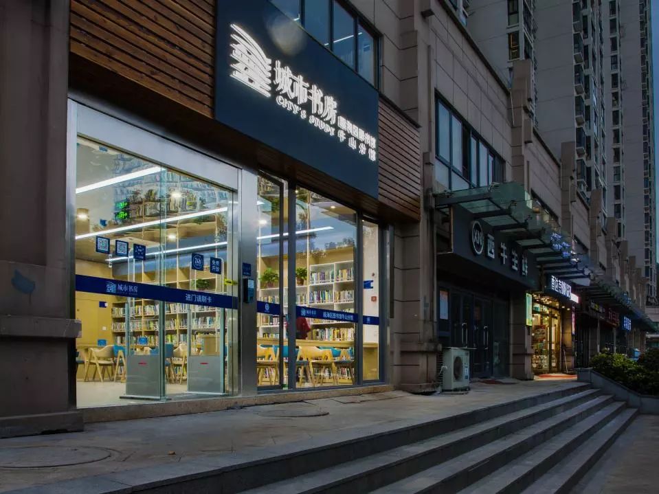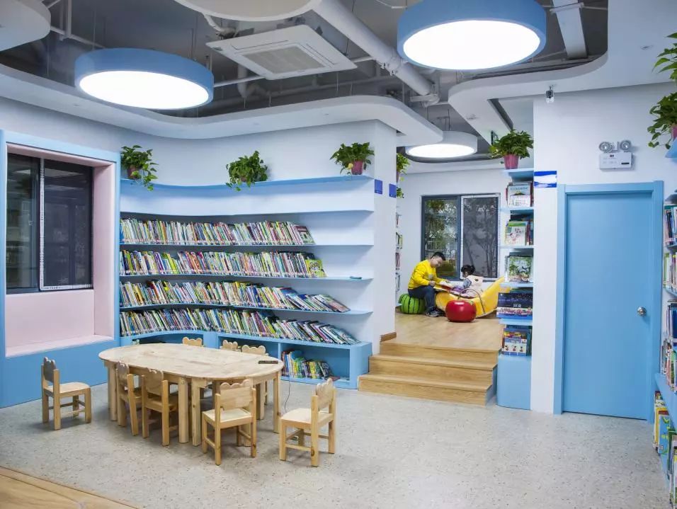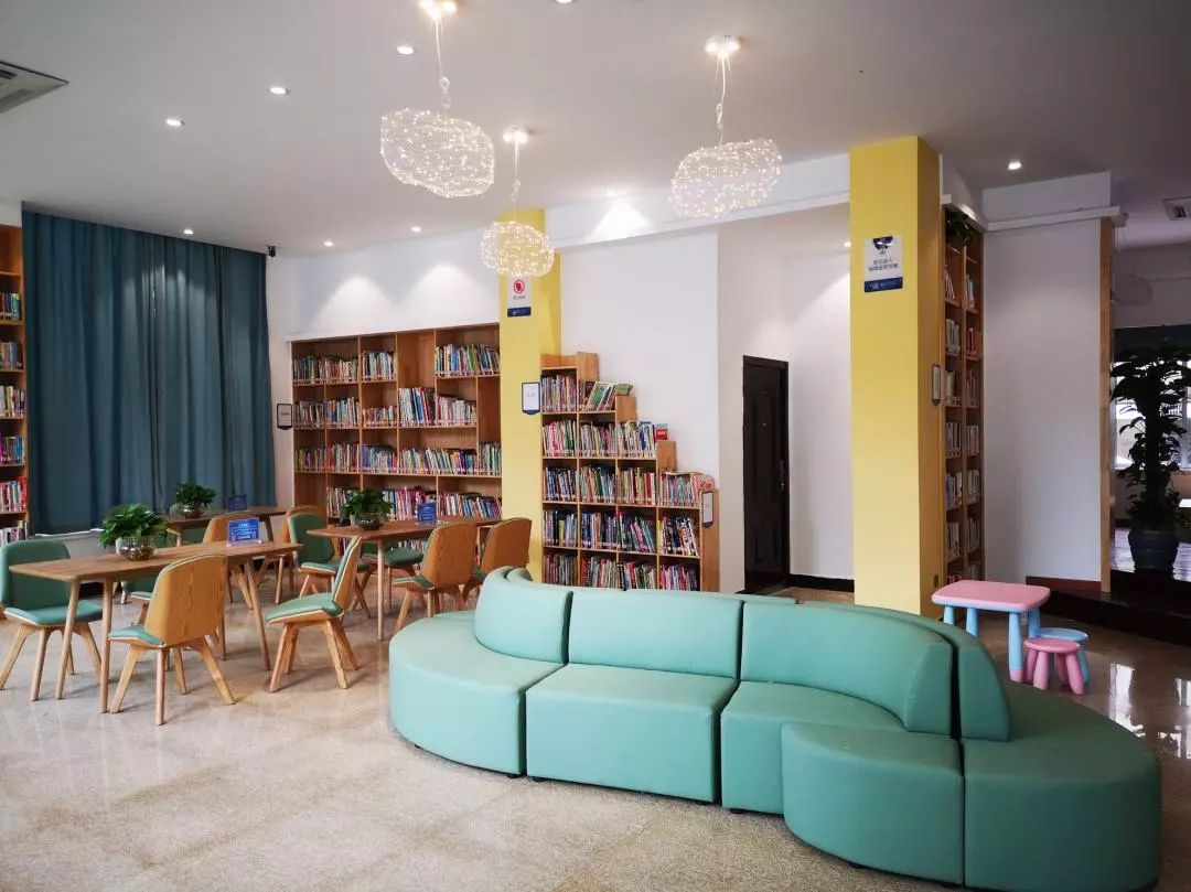 岩头城市书房位于瓯海区娄桥街道岩头社区天弘锦园5幢1楼,多了一份沉淀。搭配着蓝绿黄的桌椅点缀,